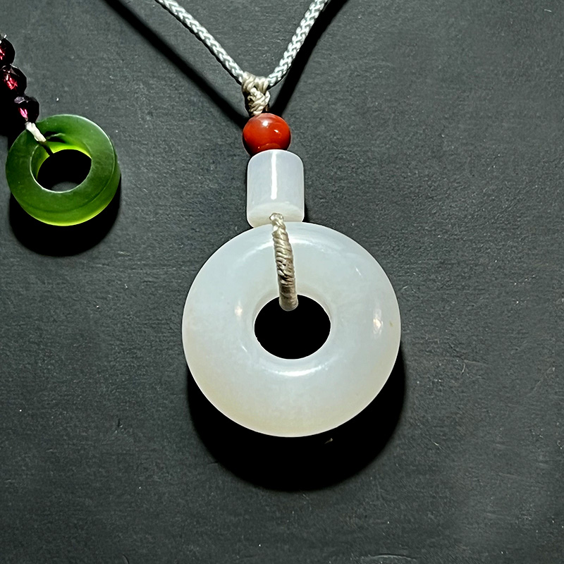 和田玉平安扣(环)。选自高品山料白玉,玉质缜密细腻,白度达羊脂。