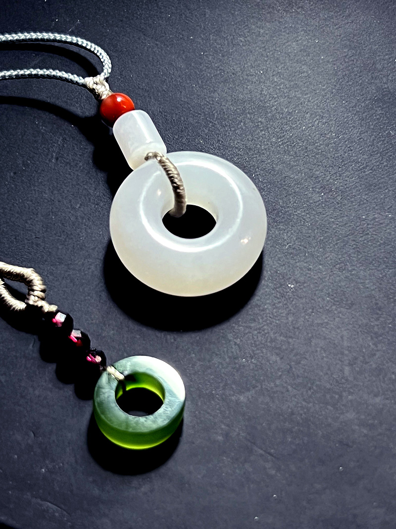 平安扣,是自古玉器中经久不衰的造型,象征着世代的圆满轮回、吉祥如意。光素无纹,也彰显料质纯净无杂,犹如出淤泥而不染的定力,那也是在纷扰浮华中对平平安安朴素的追求。