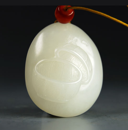 和田玉籽料手玩件。玉质细腻,白度好,局部略有微花,两只羽毛未丰的雏鸡,一前一后,追逐跳跃,忽然一只瓢虫同时吸引了他们的目光,是争食嬉闹?还是淡然处之?简练的构图,皮色巧雕之,在温润的玉质感和柔和的光泽衬托下,画面生动有趣,背面布局俩箩筐,玉件顿时有种溪边细雨,两小无猜的意境,回味。