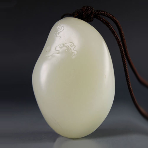 和田玉籽料手把件。白光籽儿,通常玉质缜密,此料更甚,工艺师别出新裁,随形设计,上琢白鹭池上鸣,下琢鹌鹑窝里居,寓为“一路(鹭)平安(鹌)。原籽经过工艺师精心施艺,玉件纯净无杂,随手而握,手感极佳,尤其浓厚的凝脂味道,更是彰显了和田美玉的特质。精品。