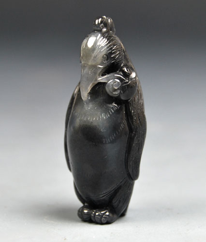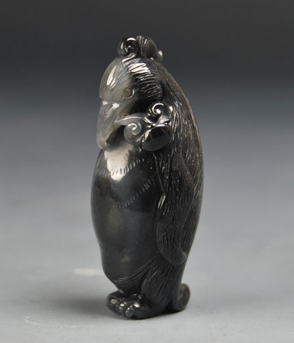 和田玉青花籽料小玩件,小企鹅,双腿并拢,长尾曳地,一脸严肃,身着超大燕尾服,像个迫不及待想长大的小绅士。